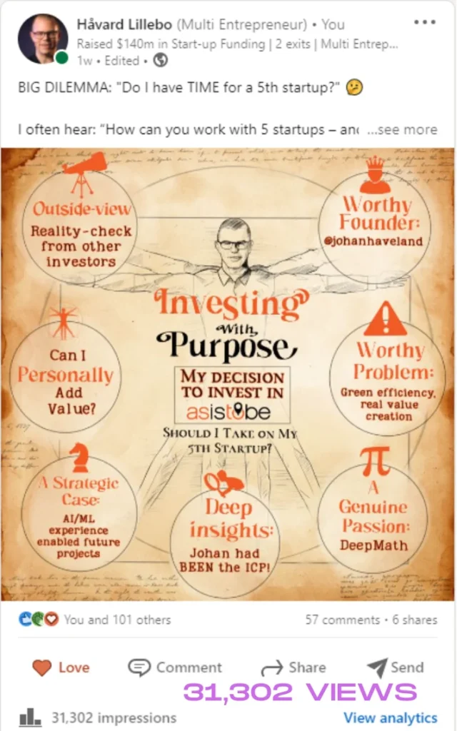 Håvard had already raised €6.5 million on LinkedIn and recognised the power of Linkedin.