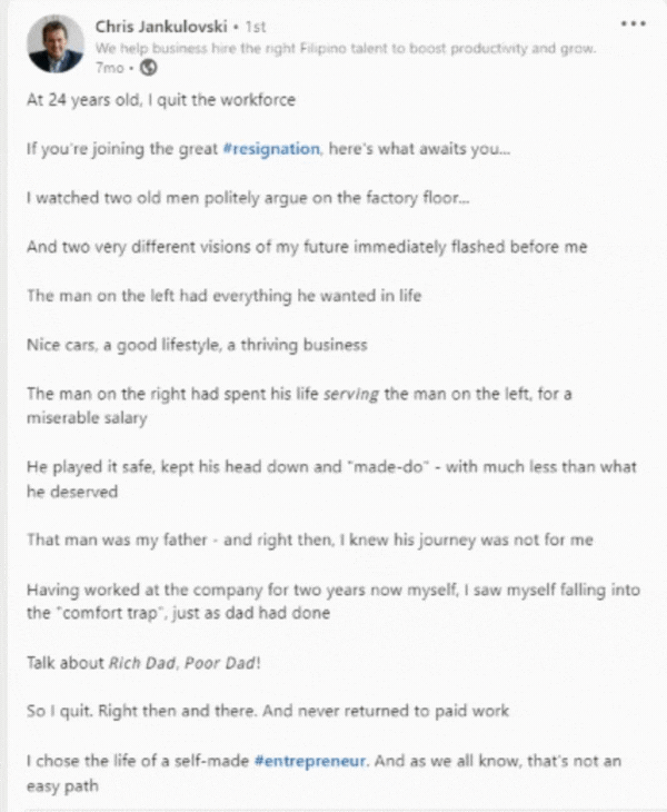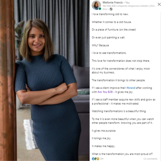Here’s an example of REALLY good personal branding from Belinda Agnew that went viral👇🏼